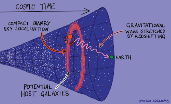 In this context, binary black hole mergers — and even more so binary neutron star mergers — can provide crucial information to help resolve this puzzle. An emerging approach is to combine gravitational-wave observations with galaxy catalogues in order to statistically identify the possible host galaxies of the mergers. By working together, gravitational-wave detectors and electromagnetic facilities can localize the origin of an event with increasing precision, allowing astronomers to carry out targeted follow-up observations.